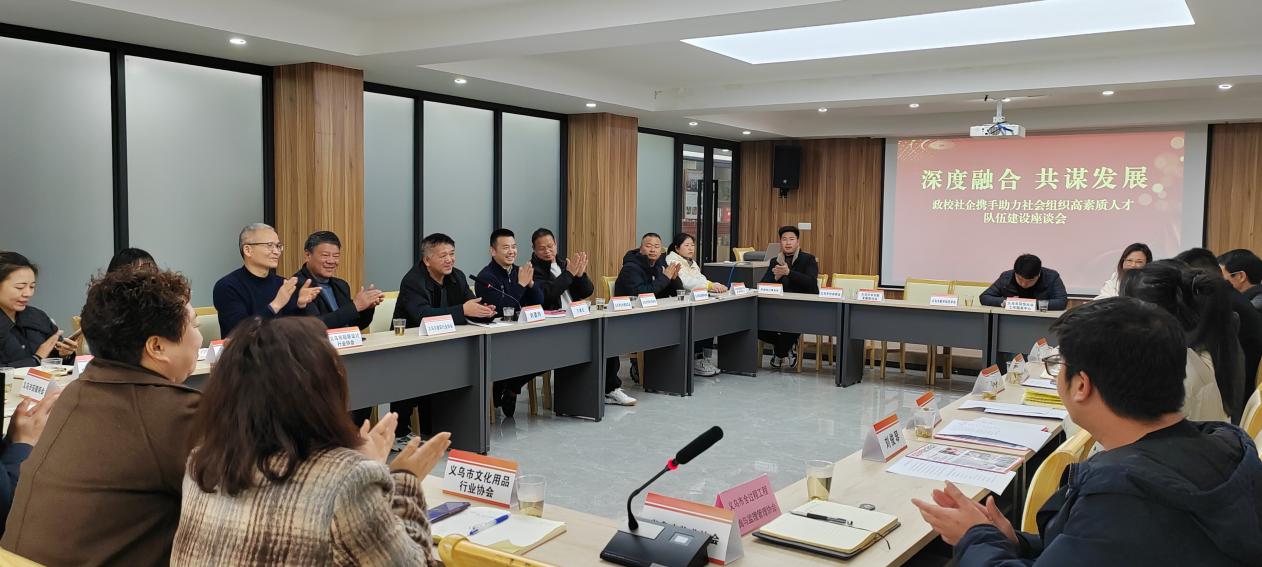 今年初,省委聚焦全面加强高素质干部队伍、高水平创新型人才和企业家队伍、高素养劳动者队伍建设专门召开会议。为树牢“大人才观”,探索人才共育与资源共享的高素质技术技能人才培养模式,提升学生职业素养,促进毕业生高质量就业,3月6日,BEAT365英国官网教师代表赴义乌市社会组织服务中心考察交流,并与相关社会组织面对面共同研讨高素质技术技能人才培养路径。义乌市民政局党委书记刘德钧、义乌市民政局党委委员方建生,义乌市社会组织总会、义乌市市政行业协会、义乌市建筑行业协会等15家社会组织主要负责人出席活动。