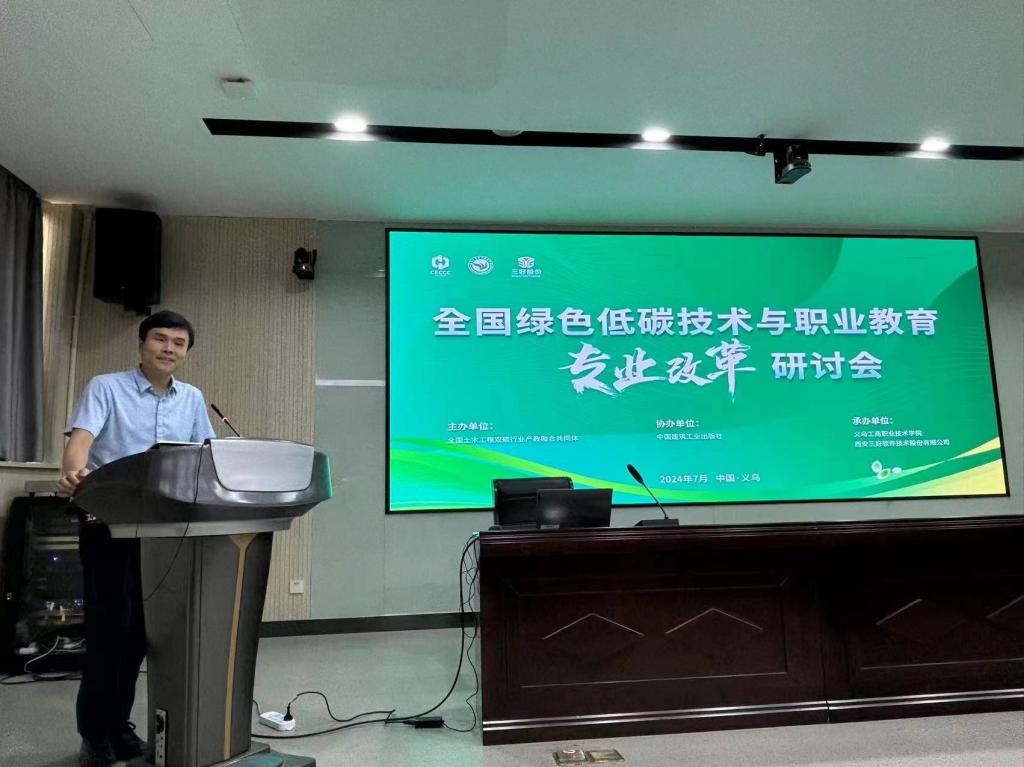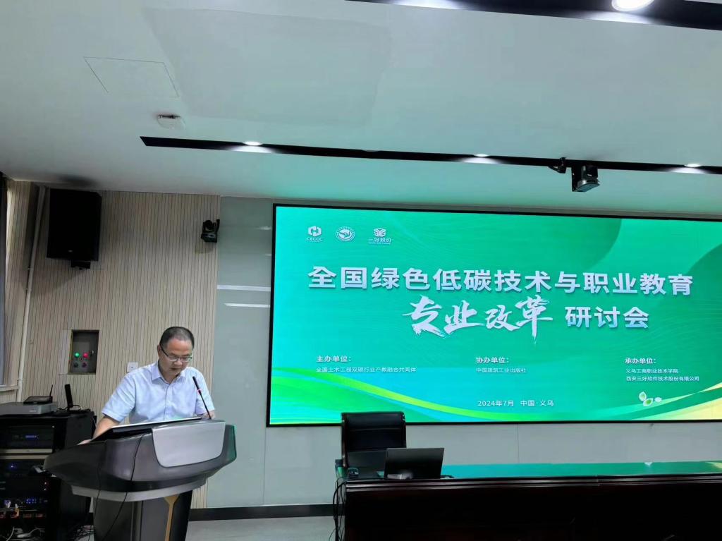 2024年7月22日,由全国土木工程双碳行业产教融合共同体主办,BEAT365英国官网、西安三好软件技术股份有限公司承办,中国建筑工业出版社协办的全国绿色低碳技术与职业教育专业改革研讨会在义乌召开。会议旨在全面学习贯彻习近平总书记关于绿色发展与职业教育的重要指示精神,促进传统专业与绿色低碳产业深度融合,深化现代职业教育体系建设改革与专业升级,提高职业教育适应性,高质量推进绿色低碳事业发展。来自省内外20所院校及相关单位的40余名领导、专家、学者参加了此次研讨会。