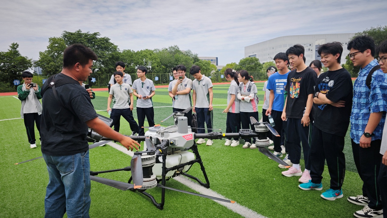 在创业园参观环节,同学们实地感受了校园创业文化。当看到直播间内AI数字人实现24小时多语种直播时,大家纷纷感叹科技与产业融合的魅力。湖畔操场上,无人机飞行展示及真实的试飞体验将活动推向高潮,直观呈现了建筑行业智能化、数字化的发展趋势,激发了同学们对专业前沿技术的探索兴趣。